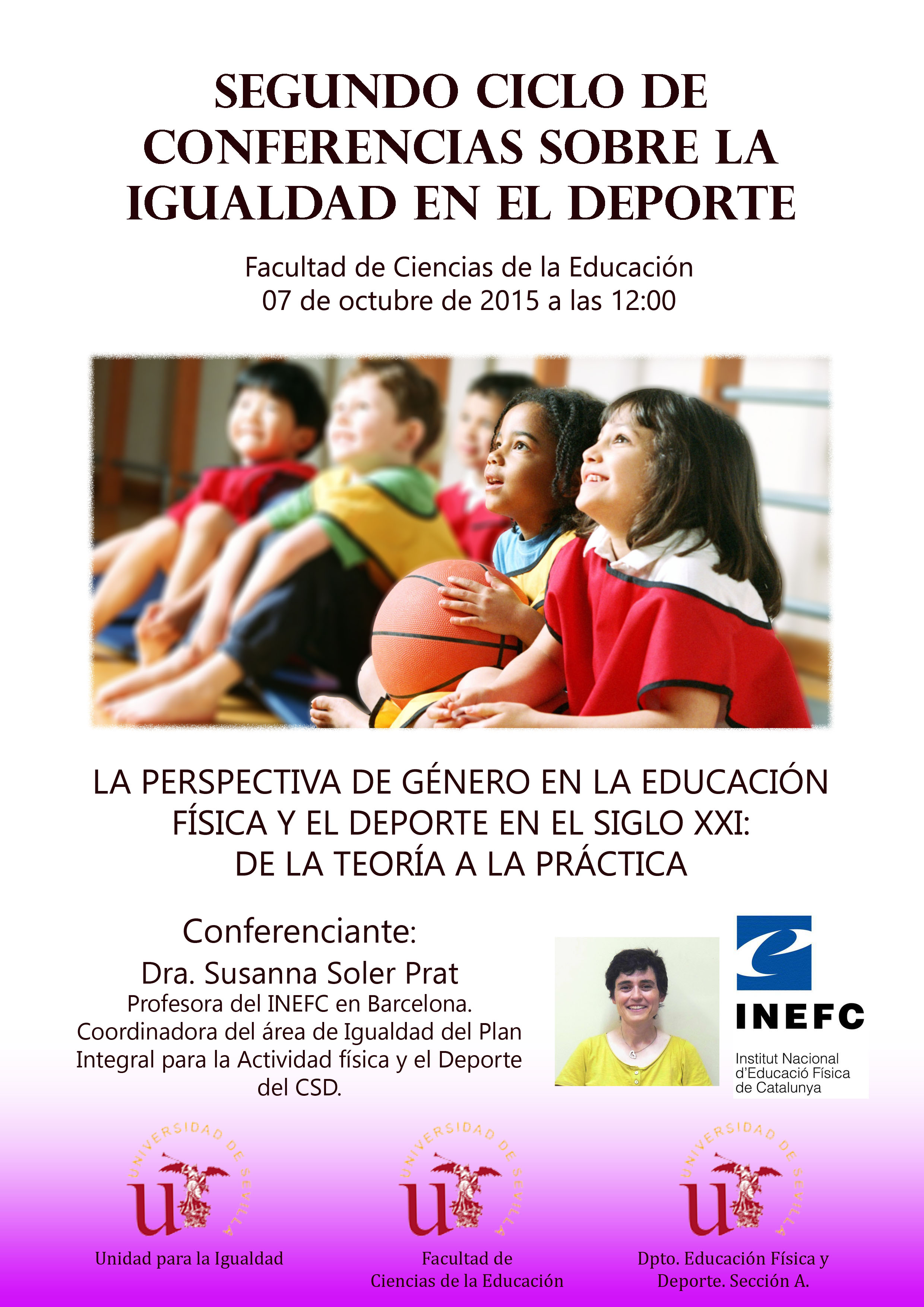 Cartel Susanna SevillaLa Dra. Susanna Soler realitza la conferència “La perspectiva de género en la EF y el deporte en el s. XXI: de la teoría a la práctica” a la U. de Sevilla.