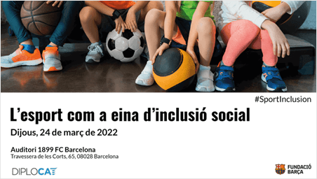 DIPLOCAT i la Fundació Barça organitzen la Jornada Internacional sobre la funció de l’Esport com a Eina d’Integració Social, que tindrà lloc a l’Auditori 1899 del FC Barcelona, el 24 de març de 2022, de 9:15h a 13:45h.