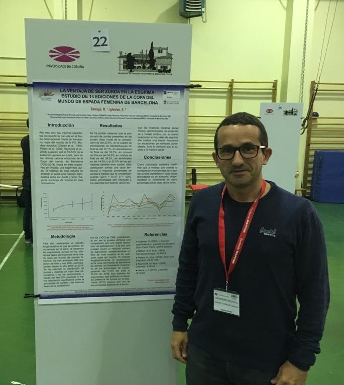 L’investigador del GISEAFE Rafael Taragó ha participat en el X Congrés Internacional de l’Associació Espanyola de Ciències de l’Esport (AECD), celebrat a A Coruña entre els passats dies 21 i 23 de novembre. Ha estat autor en les següents contribucions:- La ventaja de ser zurda en la esgrima: estudio de 14 ediciones de la copa del mundo de espada femenina de Barcelona (R. Tarragó i X. Iglesias)