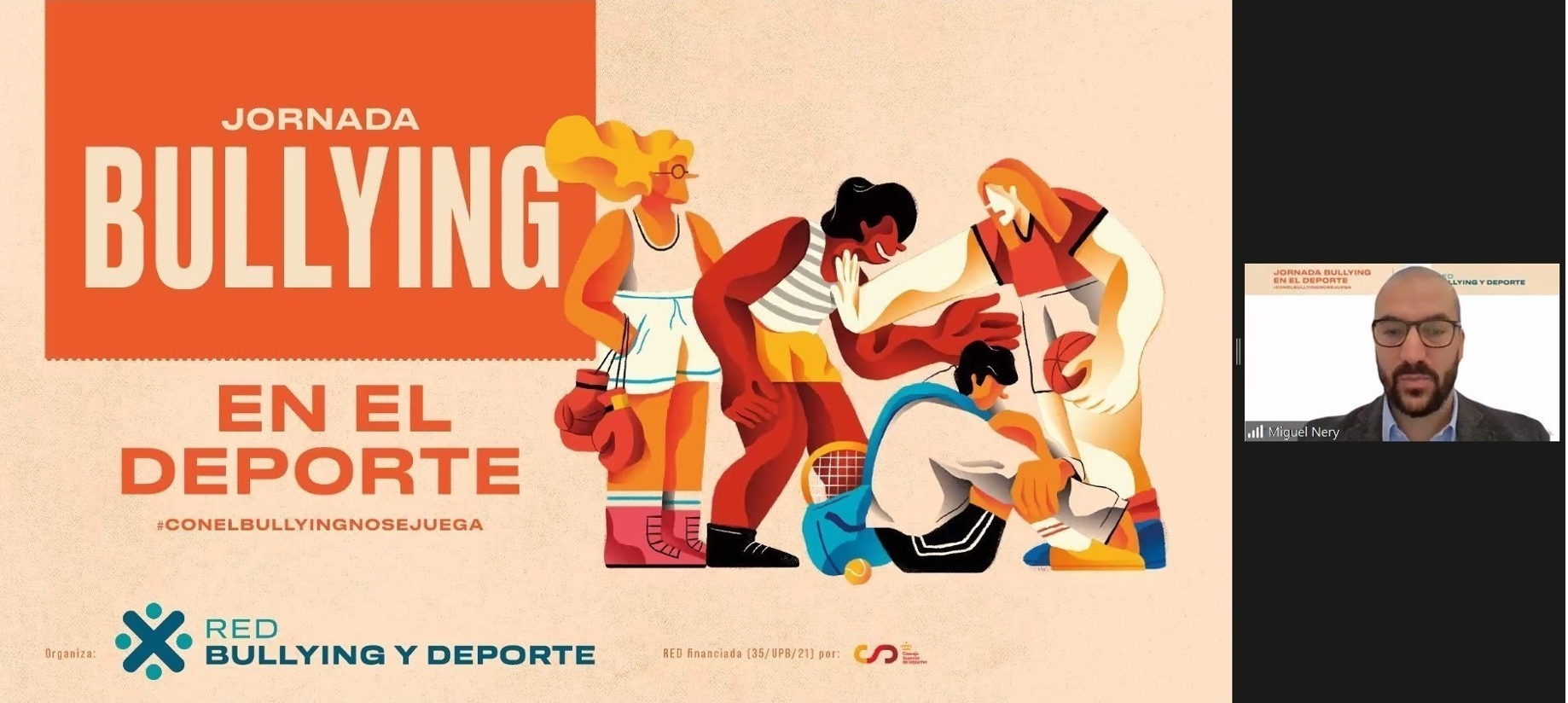 La Jornada, amb més de 380 persones inscrites, va ser presentada pel Dr. Eduard Inglés, director de l’Institut Nacional d’Educació Física de Catalunya i inaugurada pel Dr. Miguel Venda da Graça Nery, de la Universidade Europeia de Lisboa, amb la Conferència Inaugural: “Bullying en el deporte. Estado de la cuestión”. Seguidament, es va portar a terme la Formació “Estrategias de prevención del bullying en el deporte“, a càrrec de Lander Iragogorri, en representació de l’equip WatsTeam, en la qual es van poder recollir un seguit d’eines i recursos per a la prevenció de l’aparició d’aquesta problemàtica en les organitzacions esportives. En l’espai de comunicacions, el Dr. Juan de Dios Benítez Sillero, de la Universidad de Córdoba, va fer una aproximació del Bullying a l’assignatura d’Educació Física, amb la comunicació: “Bullying en Educación Física. ¿Qué sabemos actualmente?“. Xènia Ríos, de l’INEFC Barcelona, va seguir amb les comunicacions de la Jornada parlant sobre els possibles efectes que podien sorgir arrel d’una victimització en el context esportiu, amb la intervenció: “Consecuencias del bullying en el deporte formativo“. Finalment, Blanca Nualart, des del Consell Català de l’Esport, va oferir la comunicació: “Bullying en el deporte: Actuaciones del Consell Català de l’Esport (Generalitat de Catalunya)“, recollint totes aquelles accions realitzades pel CCE en relació a la prevenció de violències. Per la seva banda, Laura Sabaté i Ester Morillas, en nom de la Fundació Barça, van ser les encarregades de realitzar la segona formació de la Jornada, amb el títol: “Estrategias de intervención del bullying en el deporte“. En aquest espai, van oferir-se propostes en relació a l’actuació davant un possible cas de bullying a l’entorn esportiu. Finalment el Dr. Carles Ventura, coordinador de la RED Bullying y Deporte, va exposar els materials didàctics per a la sensibilització del bullying a l’esport, elaborats per la RED, els quals estan disponibles al web de l’INEFC.