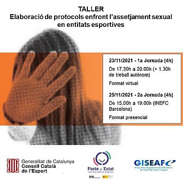 El dimarts 23 i el dijous 25 de novembre de 2021, es portarà a terme el Taller: Elaboració de protocols enfront l’assetjament sexual en entitats esportives, organitzat pel Consell Català de l’Esport, de la Generalitat de Catalunya.