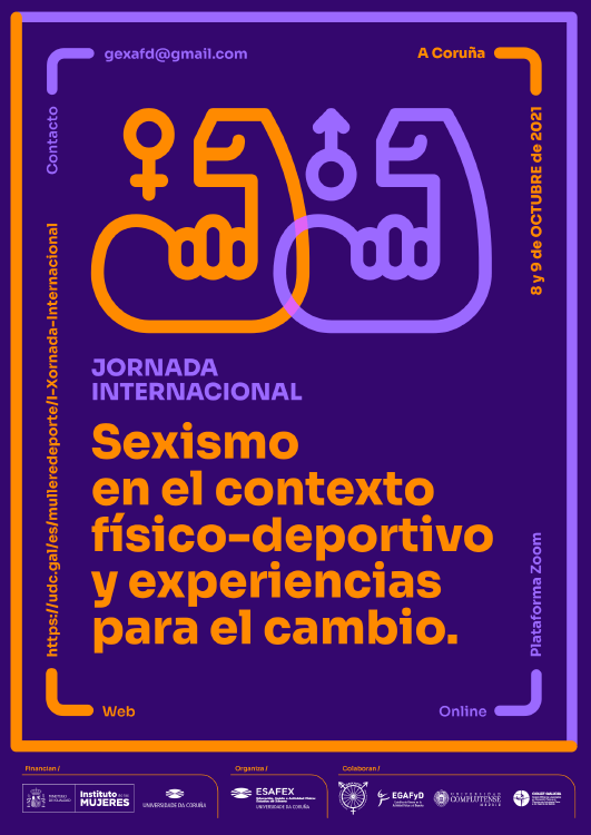 Els dies 8 i 9 d’octubre de 2021 tindrà lloc la I Jornada Internacional: Sexismo en el Contexto Físico-deportivo y Experiencias para el Cambio, vinculada al projecte I+D+i “Relaciones de Género en Educación Secundaria. Estrategias, a través de la actividad físico-deportiva, para promover interacciones de equidad libres de violencia e intimidación”, que es realitzarà en format online.