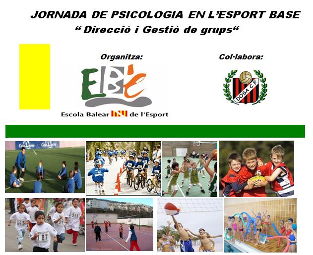 Durant els passats 23 i 24 de Març, Betlem Gomila Serra va ser convidada per l’Escola Balear de l’Esport a assistir a les jornades de “Psicologia en l’esport base – Direcció i Gestió de grups”, impartida per Dr. José Navarro Cid (Dep de Psicologia Social- UB). Les jornades van tenir lloc a Ciutadella i van tenir una excel·lent acollida.
