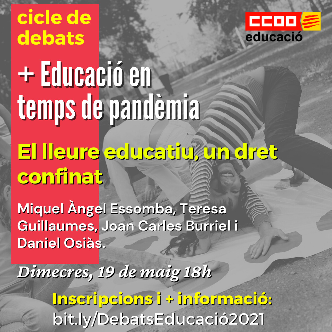 El proper dimecres 19 de maig, a les 18h, Joan Carles Burriel participarà al cicle de debats “+Educació en temps de pandèmia”, organitzat per Comissions Obreres.
