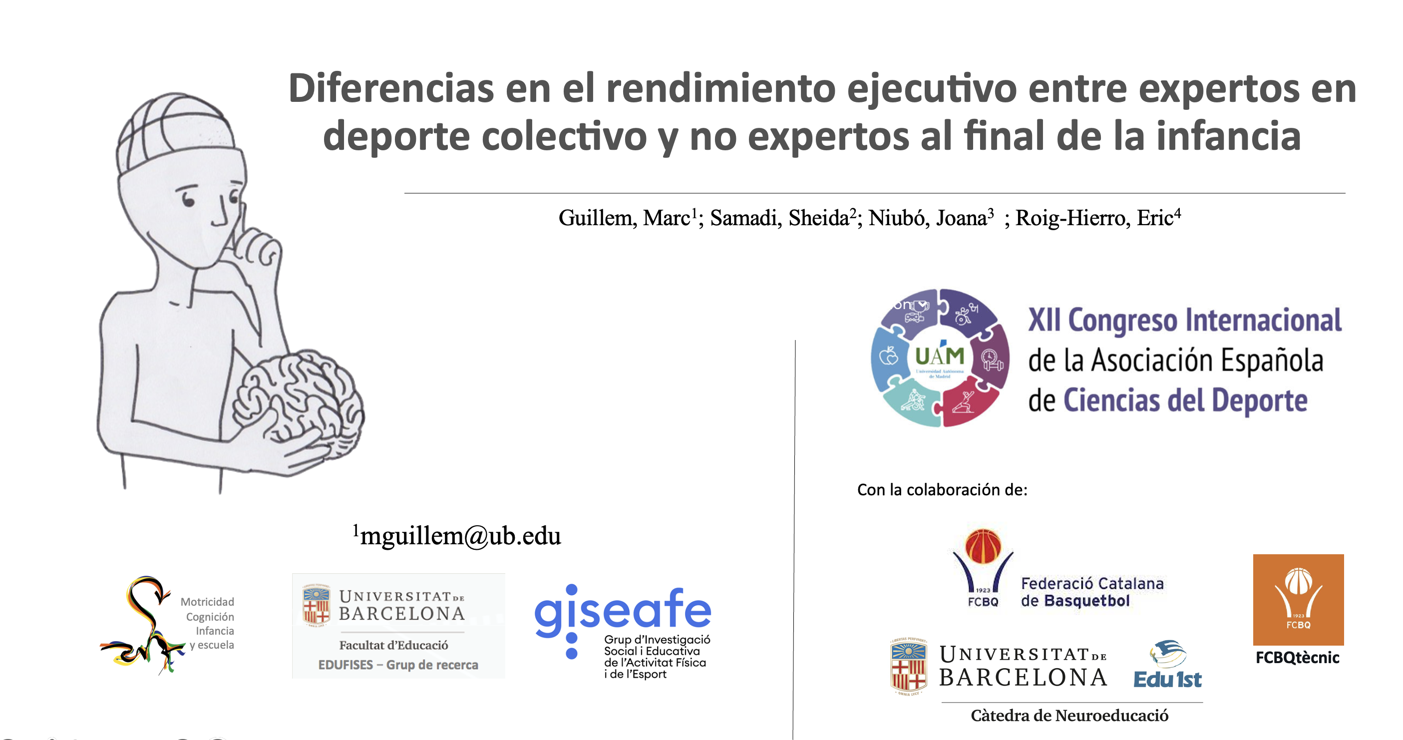 El company Marc Guillem Molins va presentar la seva comunicació titulada “Diferencias en el rendimiento ejecutivo entre expertos en deporte colectivo y no expertos al final de la infancia” amb la col·laboració de la Federació Catalana de Basquetbol.