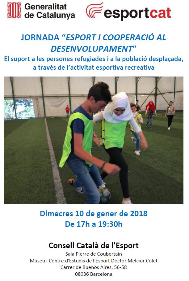 Aquesta jornada, promoguda per la Direcció General de Cooperació al Desenvolupament i el Consell Català de l’Esport, se celebrarà el proper dia 10 de gener de 2018 a les 17:00h, a la sala Pierre de Coubertin del Museu i Centre d’Estudis de l’Esport Dr. Melcior Colet. L’eix temàtic de la trobada serà el suport a les persones refugiades i a la població desplaçada a través de l’activitat esportiva recreativa.